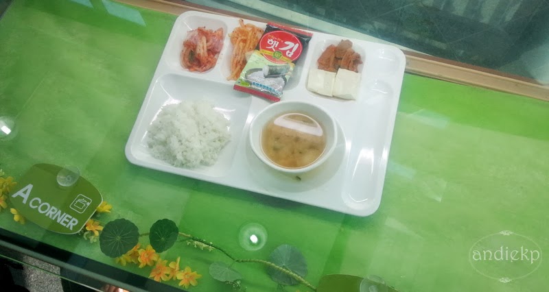 | A good meal with kimchi, spicy pork and tofu. The rice is the only thing guaranteed to be good, so take lots. In the beginning, I would say use caution with everything, but the rice. |